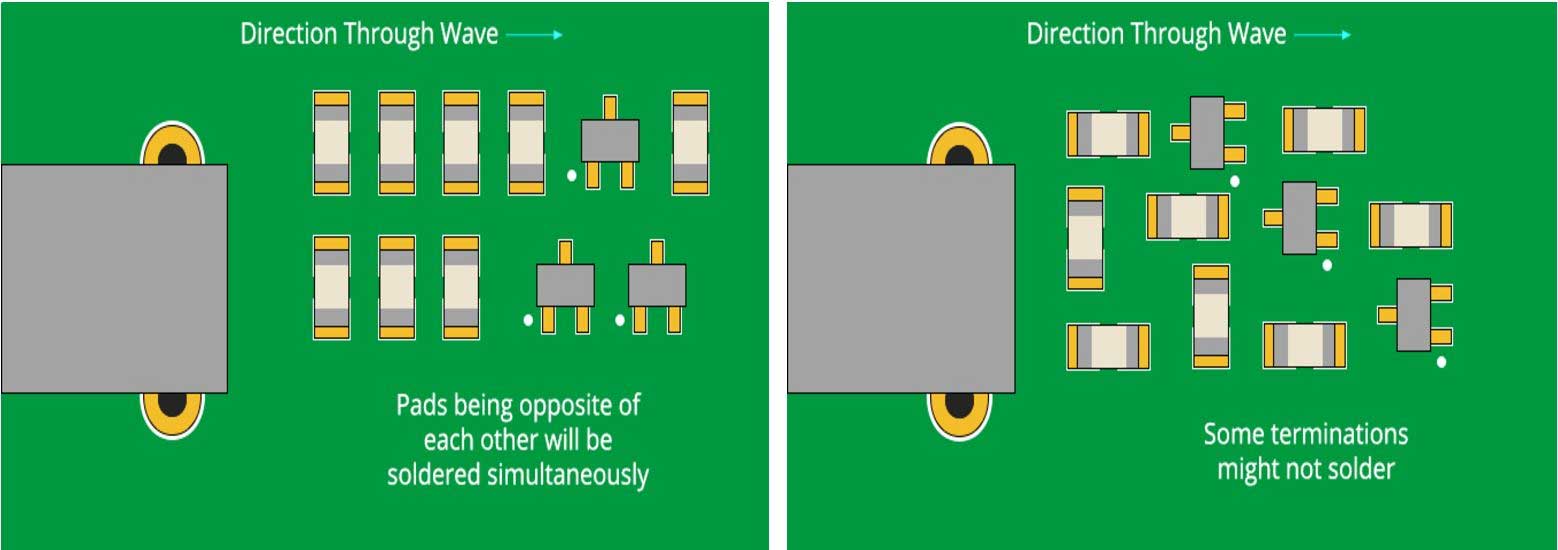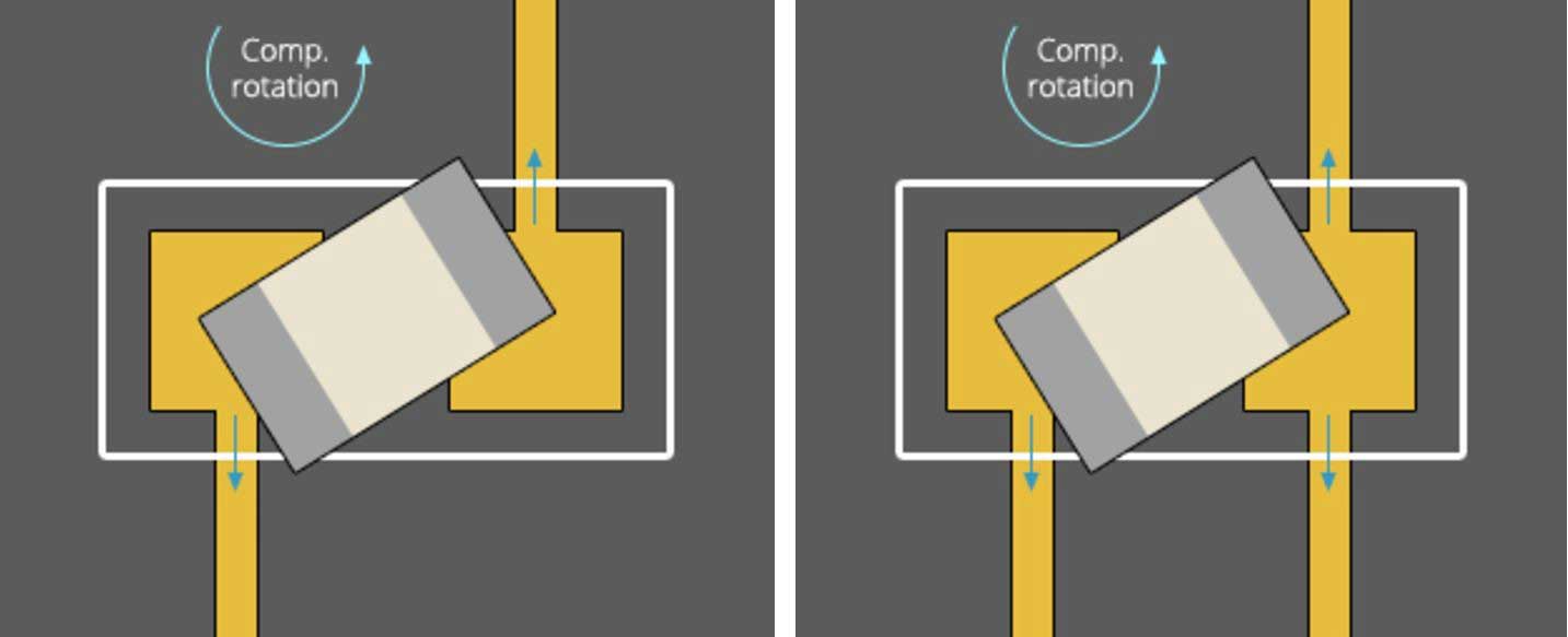 良好組件方向(左)和糟糕芯片元件方向(右)