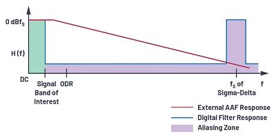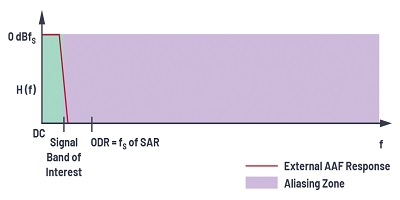 為了在高性能應用中消除混疊,使用了更高階的抗混疊濾波器來避免任何數(shù)量的折返??够殳B濾波器是一種低通濾波器,其帶寬限制了輸入信號,并確保信號中沒有超出可以折返的目標帶寬的頻率分量。濾波器的性能將取決于帶外信號與fS / 2的接近程度以及所需的衰減量。