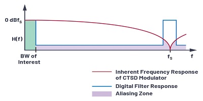對于連續(xù)時間sigma-delta(CTSD)ADC,衰減是固有的,因此我們不需要任何抗混疊濾波器。