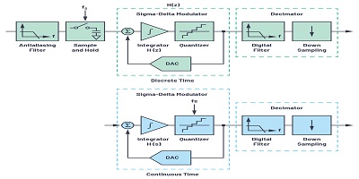 由于具有優(yōu)于其他類型ADC的眾多優(yōu)勢,CTSD架構(gòu)已成為從高性能音頻到蜂窩手機RF前端的廣泛應用中的選擇。好處包括更高的集成性和更低的功耗,但也可能而且更重要的是,因為使用CTSD解決了許多重要的系統(tǒng)級問題。由于許多技術(shù)缺陷,CTSD的使用以前僅限于相對音頻頻率/帶寬和較低的動態(tài)范圍。因此,高性能奈奎斯特速率轉(zhuǎn)換器(如逐次逼近型ADC和過采樣DTSD轉(zhuǎn)換器)已成為用于高精度,高性能/中帶寬應用的主流解決方案。