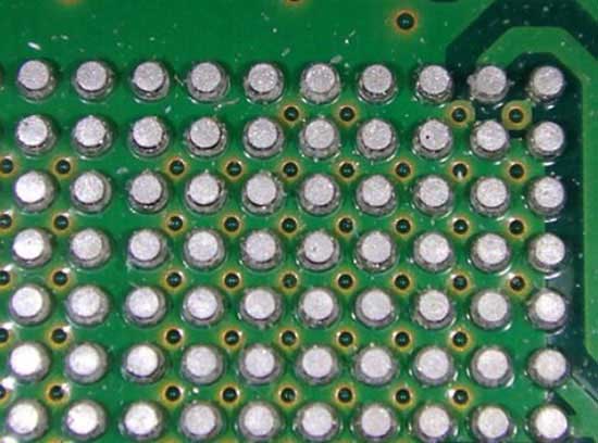 (圖3. BGA使用焊球網(wǎng)格將電信號(hào)傳導(dǎo)至PCB或從PCB傳導(dǎo)電信號(hào))