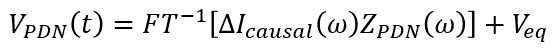 對(duì)于上圖中的模擬信號(hào),帶寬非常窄,并且不與任何PDN諧振重疊。由模擬組件在該帶寬內(nèi)吸收模擬信號(hào)而產(chǎn)生的任何瞬變都不會(huì)產(chǎn)生明顯的紋波,并且會(huì)在電壓容限范圍內(nèi)工作。無論您是使用數(shù)字信號(hào)還是模擬信號(hào),PDN都可以看作是濾波器,對(duì)從電源汲取的電流信號(hào)起作用。對(duì)于模擬信號(hào)和數(shù)字信號(hào),時(shí)域中的電壓波動(dòng)都可以使用傅立葉逆變換簡(jiǎn)單地計(jì)算出來: