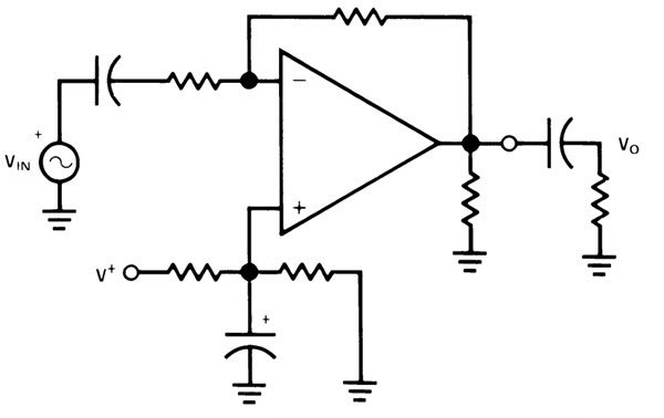 這是使用運(yùn)算放大器,電阻器和電容器實(shí)現(xiàn)的簡(jiǎn)單放大器電路。通過(guò)為電阻器和電容器選擇合適的值,可以在輸出端獲得顯著的增益。