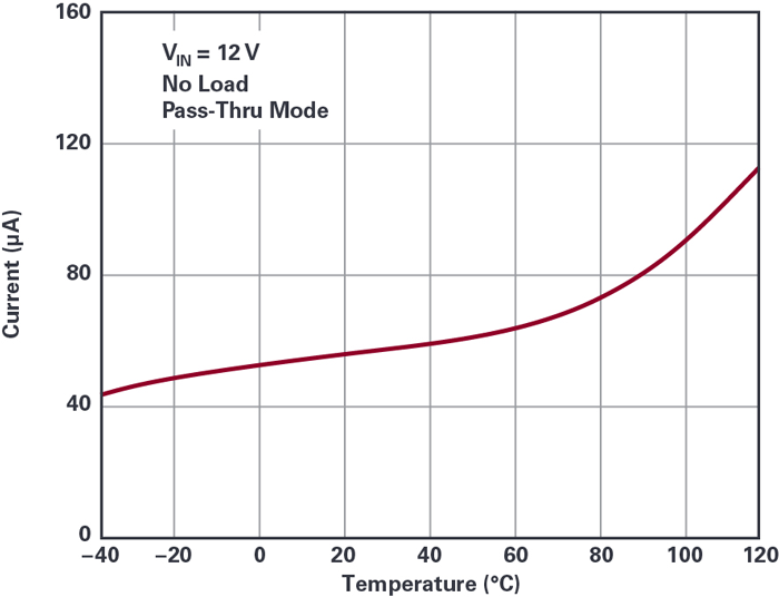 對于DC-DC轉(zhuǎn)換器設(shè)計者來說,汽車電池和類似的寬電壓范圍電源是一個復(fù)雜的問題,需要保護功能以及高效率的降壓和升壓轉(zhuǎn)換。具有直通功能的同步降壓-升壓控制器將保護功能與寬輸入范圍的降壓-升壓轉(zhuǎn)換器結(jié)合在一起,從而消除了復(fù)雜性。直通模式消除了開關(guān)損耗和噪聲,同時實現(xiàn)了超低靜態(tài)電流(圖6。在直通模式下,輸出電壓不是常規(guī)意義上的調(diào)節(jié),而是由可編程電壓窗口限制。