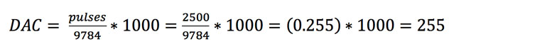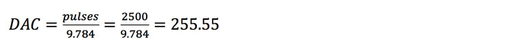 例如,如果在TIMER1中獲得2500個(gè)脈沖,則可以通過將讀取的脈沖除以我們先前發(fā)現(xiàn)的常數(shù)9.784來獲得DAC的值: