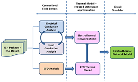 可以使用一些標準的數(shù)值技術來提取電路網(wǎng)絡模型,并且可以將相同的方法應用于通過流體流動的熱傳導和熱傳遞。通過數(shù)值提取復雜系統(tǒng)中的熱流和流體流動回路,可以大大減少仿真時間。強大的模擬器已經(jīng)為復雜3D系統(tǒng)中的關鍵區(qū)域提供了從粗到粗的離散化調(diào)整,下一代求解器將采用網(wǎng)絡方法來解決這些類型的多物理場問題。