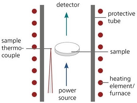 在上圖中,顯示了用于執(zhí)行LFA的設(shè)備的示例。圖中的示例代表了板材。該測(cè)試通常在封閉的機(jī)器中進(jìn)行,并通過(guò)軟件分析結(jié)果。關(guān)注的參數(shù)是熱擴(kuò)散率,可以使用以下公式確定: