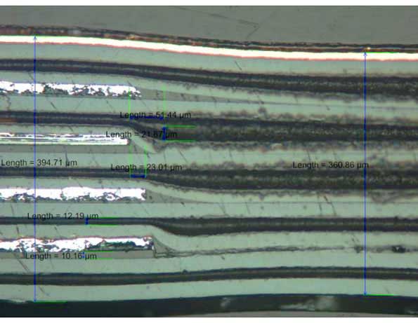 激光鉆孔腔可提供任何方法中的精度和位置精度。由于去除了介電材料,激光束受到精確控制,以實現(xiàn)均勻的深度控制和磨損。由于激光通常使用大波長,因此它無法穿透銅層,從而為該過程建立了定義明確的“停止層”。在形成腔之后,添加各向異性導(dǎo)電粘合劑物質(zhì),并將組件放置在空隙中。在特定壓力下將熱量施加到系統(tǒng)上,以熔化分散在粘合劑材料中的焊料顆粒并形成可靠的焊料鍵合。