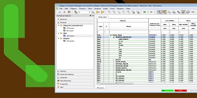 在上面的圖片中,您可以看到約束管理器如何描繪用于布線不同電力網(wǎng)的線寬設(shè)置。除了這些寬度之外,它還可以設(shè)置間隙,通孔,布線拓?fù)?,組件間距,阻抗設(shè)置等規(guī)則。約束管理器使您可以通過易于管理的門戶進(jìn)入設(shè)計數(shù)據(jù)的約束信息,從而控制電路板的設(shè)計方式。
