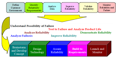 DfR的順序包含六個基本步驟,可幫助設(shè)計團隊制定可靠的產(chǎn)品開發(fā)路線圖。盡管DfR影響設(shè)計和開發(fā)過程的各個方面,但主要影響發(fā)生在概念和設(shè)計階段。專注于DfR的設(shè)計團隊開始在概念階段的初期就考慮失敗的可能性,并在尋找分析和提高可靠性的方法時保持這種關(guān)注。