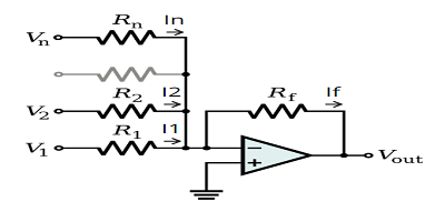 -V out / R f = V 1 / R 1 + V 2 / R 2 +…+ V n / R n