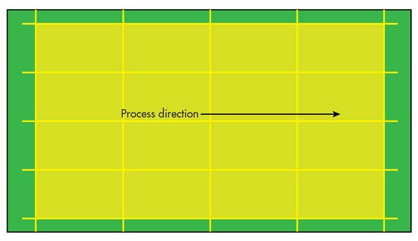 設(shè)計(jì)面板尺寸時(shí)要考慮的另一項(xiàng)是將輸送機(jī)寬度的變化保持在最小。在我所生活的低數(shù)量,高混合的世界中,這一點(diǎn)尤其重要。如果您要沿一條線運(yùn)行數(shù)百萬(wàn)個(gè)相同的板,那么這不是大問(wèn)題。在限制輸送機(jī)寬度變化的一個(gè)示例中,開(kāi)發(fā)了以下陣列寬度以使用24英寸輸入。1英寸地制作出的面板尺寸。周邊處理間隙: