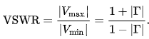 傳輸線中最大電壓和最小電壓的絕對(duì)值之比稱為電壓駐波比或VSWR。通過(guò)傳輸線的低VSWR意味著電子設(shè)備連接良好,并且電流中的任何中斷都將更容易找到。VSWR由以下公式定義。