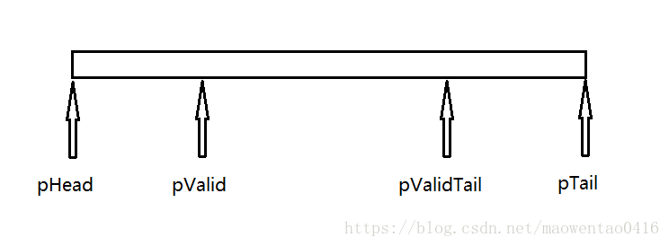 4、pValidTail 是使用區(qū)域的的結尾指針,存數據時的起點,當存數據時,pValidTail要發(fā)生偏移