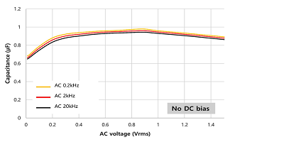 3.交流電壓電平會(huì)影響未施加直流偏置的有效電容,如下圖所示。