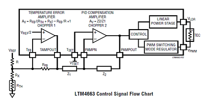 LTM4663模塊基于Peltier效應針對熱電冷卻/加熱子系統(tǒng),提供了實現(xiàn)溫度控制環(huán)路以實現(xiàn)精確熱穩(wěn)定所需的功能。