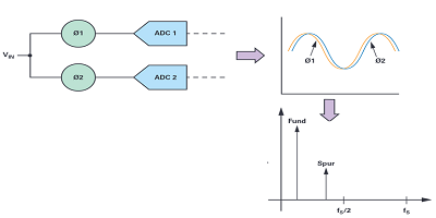 當ADC被交錯,兩個或更多的ADC,以及一個限定的計時關(guān)系 被 用于 以 同時 取樣 的 輸入 信號 和 產(chǎn)生 一個組合的輸出信號的結(jié)果在采樣帶寬在一些多個單個ADC的。利用m 個ADC可以將有效采樣率提高m倍。