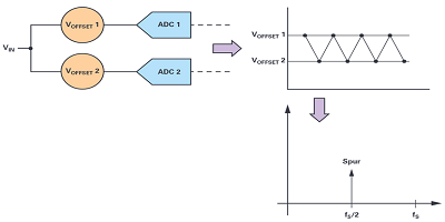 在 最簡單 的 這些 來 了解 是 可能 的 偏移 不匹配 的兩個ADC之間。每個ADC都有一個相關(guān)的直流偏移值。當所述兩個ADC被交錯和樣品采集替代地,回到來回之間的2級的ADC,所述直流偏移的每個連續(xù)樣品的變化。