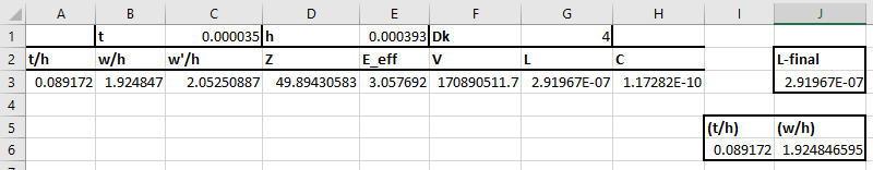 幸運的是,這個問題很簡單,可以使用Excel中的求解器工具解決。我創(chuàng)建了一個簡單的電子表格,用于解決以下使用Hartley方程和電感方程的最小化問題。在以下等式中,a和b是分別定義(w / h)和(t / h)的實際最大值的常數(shù);這些可以由設(shè)計師選擇: