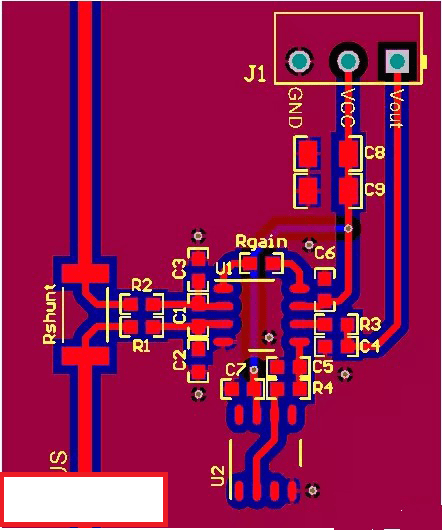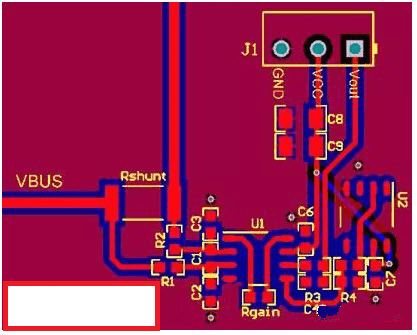 在圖7中,可以看到R1和R2到分流電阻器的線長(zhǎng)相同,并且使用了開爾文連接。INA引腳的增益設(shè)置電阻盡可能短,基準(zhǔn)緩沖電路盡可能靠近基準(zhǔn)引腳。