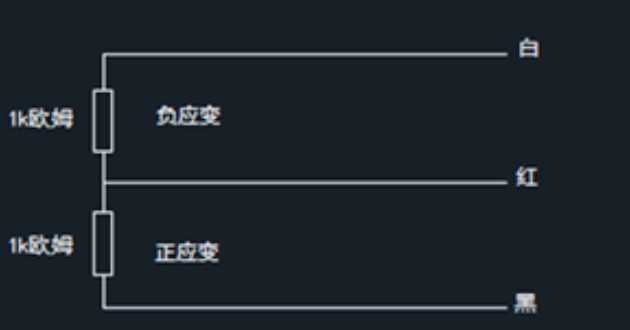注:負(fù)應(yīng)變電阻,當(dāng)收到壓力或拉力時,電阻變小。