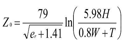 下面所示的等式1通常用于計(jì)算表面微帶傳輸線的阻抗。已經(jīng)證明它與現(xiàn)代PCB中使用的尺寸不正確,但是它說明了Dk或e?如何影響阻抗。