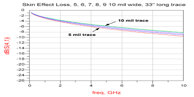 如上所述,使用更寬的走線的動(dòng)機(jī)是通過增加走線的表面積來減少由“集膚效應(yīng)”現(xiàn)象引起的信號(hào)損失。