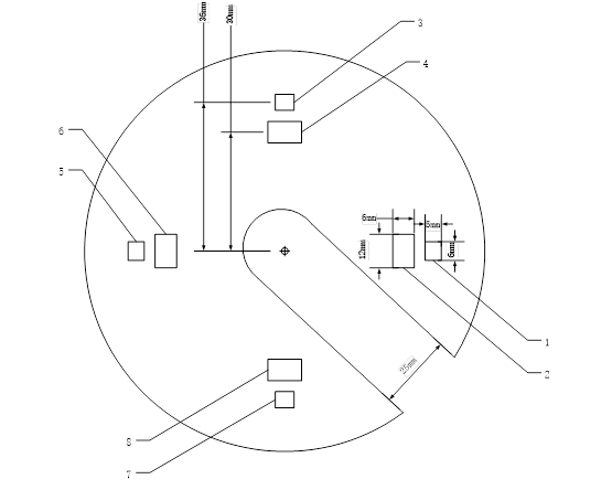 傳感器外圈半徑r1=36mm(傳感器芯片中心位置到陣列中心的距離)。(在1-3mm內(nèi)適當(dāng)調(diào)整,保證內(nèi)外圈傳感器芯片的間距盡可能?。?。PCB板內(nèi)孔直徑:25mm。